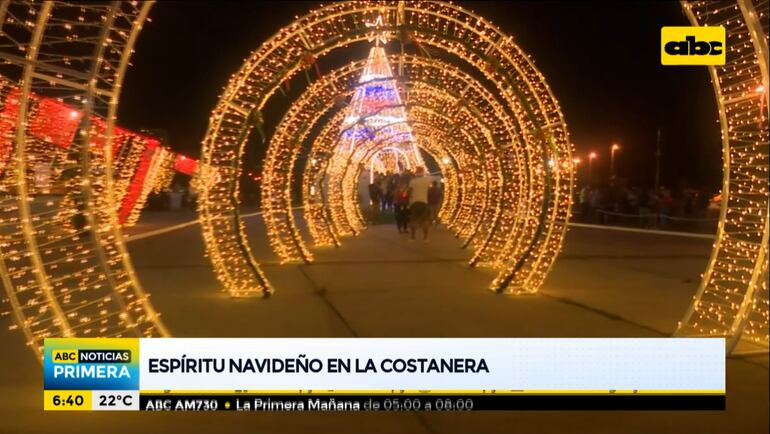 Este artículo tiene 4 años de antigüedad Se siente el espíritu navideño en la Costanera “José Asunción Flores” de Asunción. En el lugar se instaló el “Parque Navidad” que es un paseo de luces por el túnel que termina con el pesebre. En medio del túnel está una especie de cúpula que representa a la tejedora de ñanduti. Muchas familias visitan el Parque Navidad que se habilita a las 17.30 horas y se apagan las luces a las 22.00.