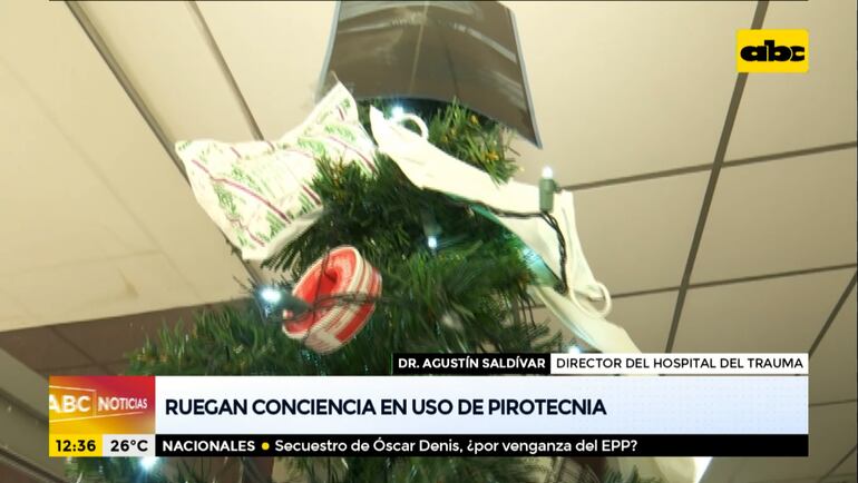Este artículo tiene 4 años de antigüedad El Hospital de Traumas lanzó este lunes su campaña de concienciación de la ciudadanía en cuanto al uso de pirotecnia en estas fiestas de fin de año con la inauguración de un nuevo cartel y de un árbol de navidad adornado con insumos médicos usados para primeros auxilios y fotografías de las lesiones que causan los fuegos artificiales, principalmente en los niños.