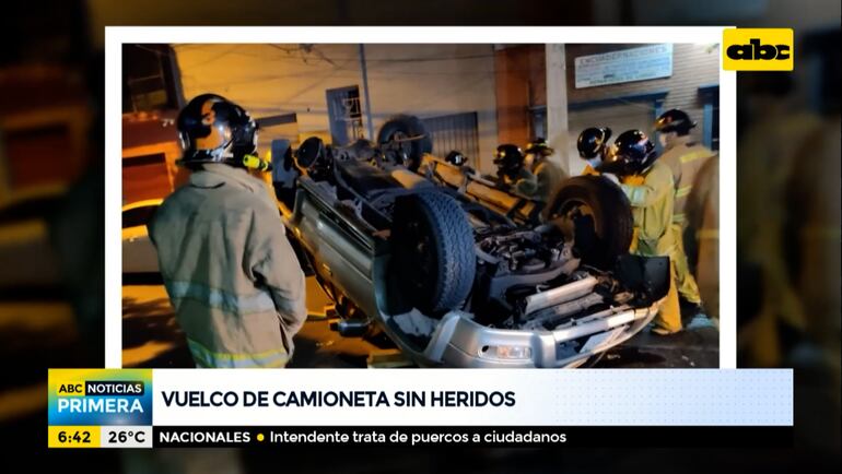 Este artículo tiene 4 años de antigüedad Una camioneta Toyota Hilux Surf volcó aparatosamente sobre la calle Estados Unidos y Manuel Domínguez de Asunción. Por más que la camioneta haya quedado con cuantiosos daños económicos, su conductor, identificado como Osvaldo Morel, salió ileso.