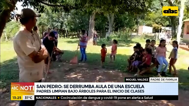 Este artículo tiene 4 años de antigüedad La estructura de la escuela básica 2271, Barrial Santo Tomás , del distrito de Tacuatí, se derrumbó. Los padres , ante la desidia de las autoridades, limpian el patio para iniciar clases bajo los árboles y sin muebles.