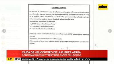Este artículo tiene 4 años de antigüedad La Fuerza Aérea Paraguaya comunica el fallecimiento de tres personas tras la caída de la aeronave UH-1H con matrícula FAP Nº 14-0433, que se encontraba realizando vuelo de instrucción y que sufrió un accidente aéreo en el predio de la Base Aérea de Ñu Guazú.
