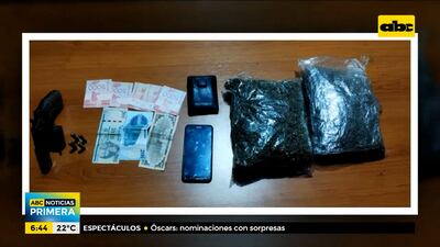 Este artículo tiene 3 años de antigüedad Édgar Gauto Saucedo y José Ramón Medina, el último con orden de captura y antecedentes por robo agravado y posesión de drogas, fueron aprehendidos por agentes de la comisaría 1ª de San Lorenzo. Los mismos estaban a bordo de un vehículo Toyota Vits estacionado en el shopping Saturio Ríos y con actitud sospechosa, según los efectivos policiales intervinientes. Tras la inspección del automóvil se encontraron 720 gramos de marihuana en la valijera y un revólver calibre 38. La fiscala de este caso es Ana Girala.