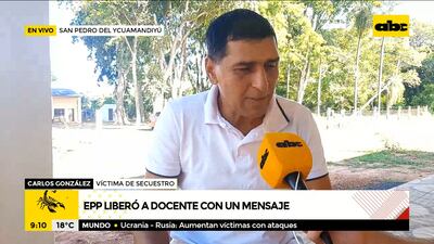 Este artículo tiene 3 años de antigüedad Carlos González, el docente secuestrado por el grupo criminal EPP, detalló todo lo vivido con la banda criminal durante nueve días, desde el momento de su retención hasta su liberación. Aseguró que lo trataron “bien” y que sus captores lo tomaron “por accidente”. Insistió en que fue “retenido” y utilizado para enviar un mensaje a las autoridades nacionales, en que el EPP pide información sobre la hija de Alcides Oviedo Brítez a cambio de dar a conocer el paradero de Óscar Denis y Edelio Morínigo.
