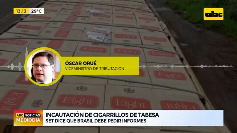 Este artículo tiene 3 años de antigüedad El viceministro de Tributación, Óscar Orué, se desmarcó este miércoles de un caso de incautación de 457.500 cajetillas de cigarrillos fabricados por Tabesa en Brasil. Aseguró que son las autoridades de ese país las que tienen que pedir los documentos para determinar la trazabilidad de los mismos. El lunes pasado, agentes de la Policía Rodoviaria Federal de Brasil incautaron 457.500 cajetillas de cigarrillos producidos por Tabacalera del Este SA –propiedad de Horacio Cartes- en dos operativos diferentes. Dos hombres fueron presos y un camión quedó retenido. Al respecto, el viceministro de Tributación, Óscar Orué, se desmarcó del caso. “No está en nuestra jurisdicción. Yo no sé si es producto paraguayo”, afirmó. En otro momento, dijo que -a pesar de haber un convenio de cooperación firmado con la Receita Federal- es esa entidad la que debe remitir el pedido si necesita o no información relacionada a la trazabilidad del producto. “Con gusto vamos a remitir información si es que solicitan información”, finalizó.
