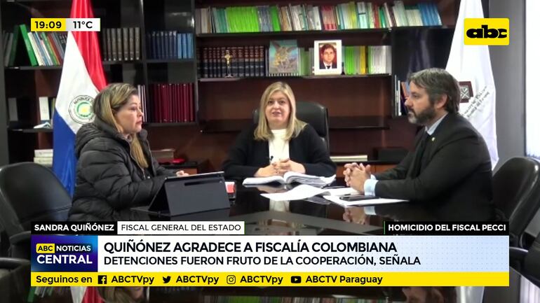 Este artículo tiene 3 años de antigüedad La fiscal general del Estado, Sandra Quiñónez agradeció públicamente a las autoridades colombianas el trabajo que realizaron para capturar a los cinco presuntos implicados en el asesinato del fiscal Marcelo Pecci. La titular del Ministerio Público resalta que la cooperación bilateral fue fundamental para la investigación.
