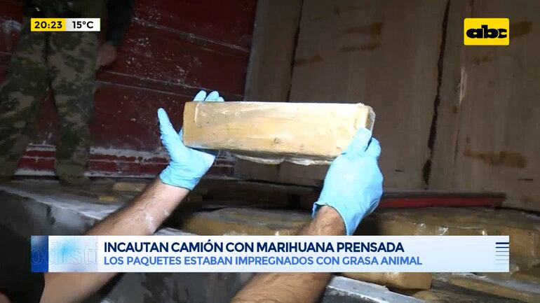 Este artículo tiene 3 años de antigüedad Los paquetes de marihuana estaban impregnados de grasa animal. Se presume que es para anular el olor y evitar ser detectada durante los controles. La Senad informó que fueron más de una tonelada de marihuana la que se incautó de un camión de gran porte en el distrito de Yrybucuá,