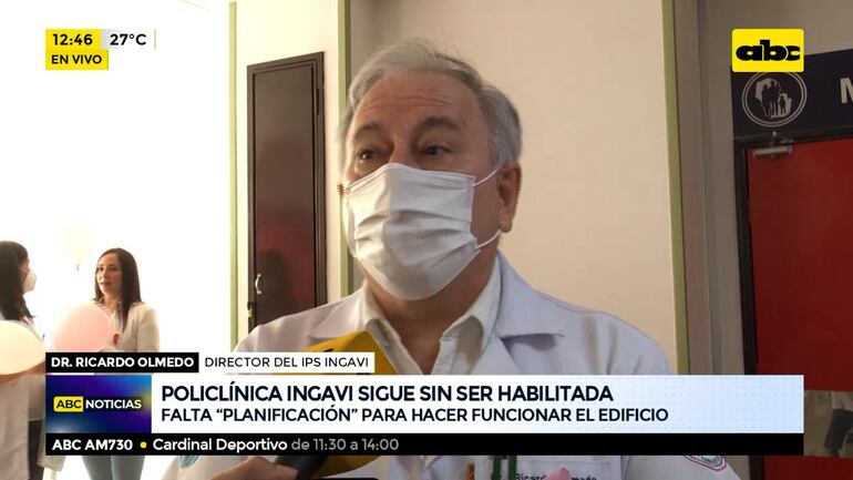 Este artículo tiene 3 años de antigüedad El Dr. Ricardo Olmedo, director del IPS Ingavi, afirmó que el edificio de la Policlínica Ingavi, que fue terminado hace varios meses, no se habilita aún por “falta de planificación”. Mientras, todos los consultorios de especialidades siguen funcionando en la Clínica Periférica, en donde varios pacientes afirman que aguardan horas para poder consultar.