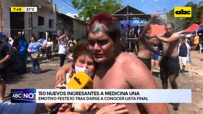 Este artículo tiene 3 años de antigüedad La Facultad de Medicina de la UNA dio a conocer su lista final de ingresantes entre los más de 800 postulantes. Finalmente son 150 los nuevos “bichos” de la alta casa de estudios tras alcanzar los mejores puntajes entre las cinco materias que sirvieron de filtro.