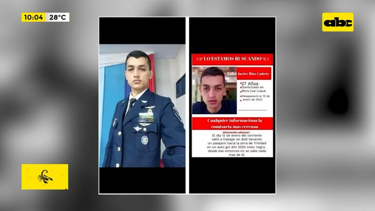 Este artículo tiene 3 años de antigüedad En comunicación con A La Gran 730 este martes, la fiscala Raquel Vera habló del avance de la investigación sobre la desaparición del sargento primero de la Fuerza Aérea Líder Javier Ríos, con paradero desconocido desde el 12 de enero. El sargento Ríos fue visto por última vez cuando salió de su residencia en Luque el jueves en horas de la noche para trabajar como conductor de la plataforma Bolt, a lo que se dedicaba en su tiempo libre.