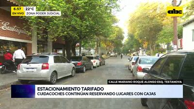 Este artículo tiene 3 años de antigüedad Cuidacoches se ingenian para continuar reservando lugares con cajas en zona del Poder Judicial. Este tipo de hechos se replican en varios puntos de la Capital ante la inminente implementación del sistema de estacionamiento tarifado.