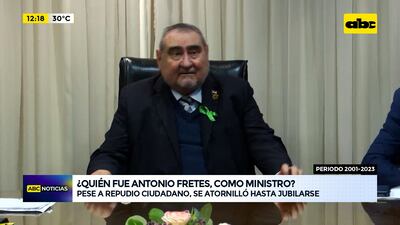 Este artículo tiene 2 años de antigüedad ¿Quién es Antonio Fretes? Por más de 20 años fue ministro de la Corte Suprema, su figura está ligada al cartismo. Ahora logra acogerse a la jubilación, saliendo por la “ventana” de la institución en medio de un fuerte repudio ciudadano por hechos de corrupción. Estuvo durante el periodo 2001 al 2023. Lo sindican de ser cabecilla del “clan Fretes”.