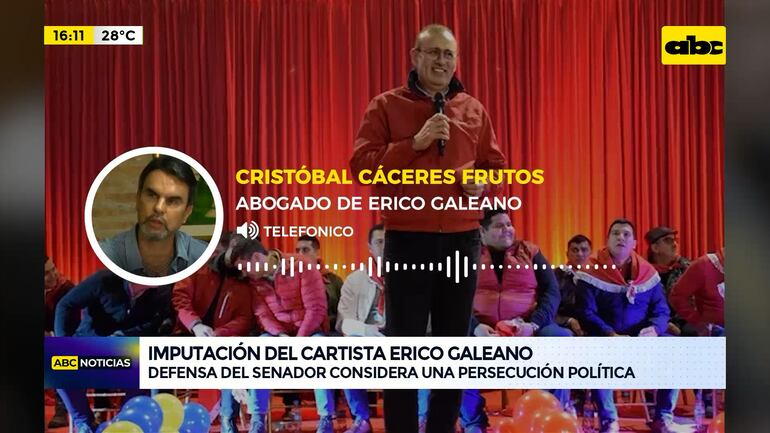 Este artículo tiene 2 años de antigüedad El abogado del diputado colorado cartista Erico Galeano sostuvo que la imputación a su cliente por supuesto lavado de dinero y asociación criminal fue apresurada. Dijo que la decisión del Ministerio Público no cumple normativas de orden constitucional.