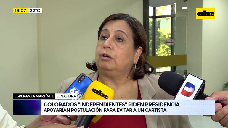 Este artículo tiene 2 años de antigüedad La Senadora Esperanza Martínez dijo que apoyarían la postulación de un colorado Independiente para presidir el Congreso. Habló de la necesidad de mantener un contrapoder con relación al cartismo. Todavía no hay una postulación, a la par que siguen las conversaciones en la multibancada de la Cámara Alta.