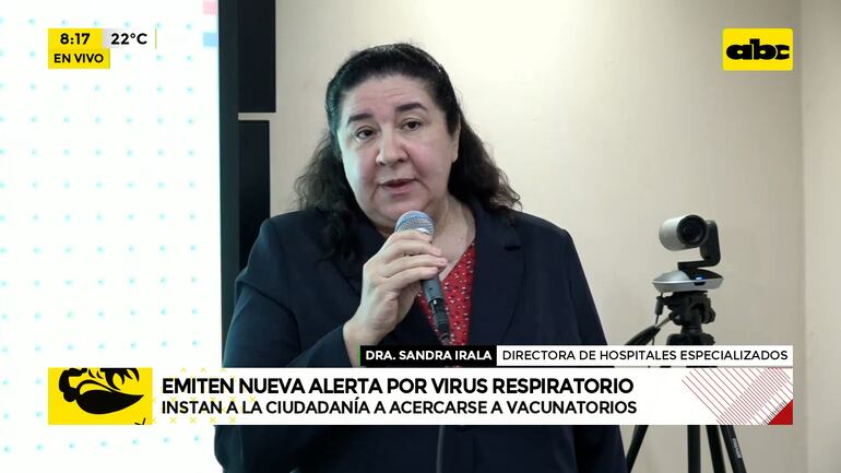 Este artículo tiene 2 años de antigüedad Emiten nueva alerta por virus respiratorio. Instan a la ciudadanía a acercarse a vacunatorios “El pico estacional de virus sincitial corresponde a mayo y junio. Vemos momentos de saturación de servicios en urgencias pediátricas”, Dra. Sandra Irala.
