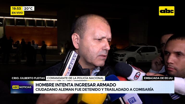 Este artículo tiene 2 años de antigüedad Un hombre de nacionalidad alemana intentó ingresar armado a la sede de la Embajada de los Estados Unidos (EE.UU.) en Asunción en la tarde de este martes. El extranjero portaba armas de fuego y tenía puesto un chaleco antibalas. La camioneta del ahora detenido está siendo inspeccionada por la Policía.