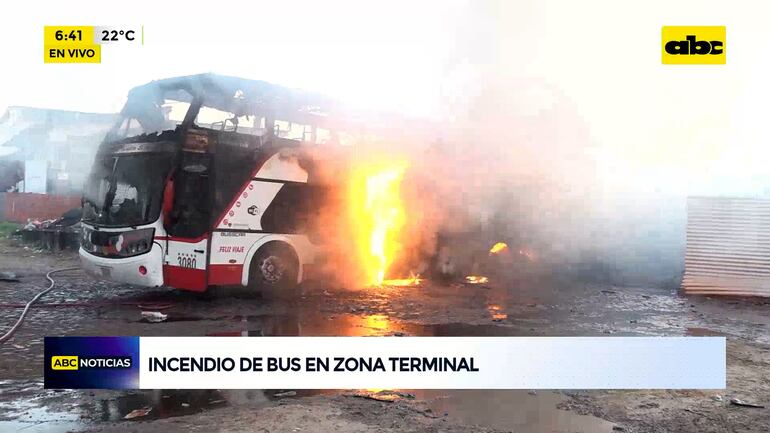 Este artículo tiene 2 años de antigüedad A primeras horas de este sábado, un ómnibus vacío de la empresa San Luis se incendió en las cercanías de la Estación de Buses de Asunción, puntualmente en una estación de servicio ubicada en la avenida Fernando de la Mora casi Yvapovõ.