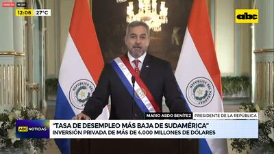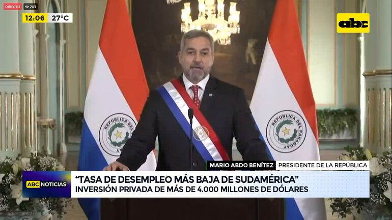 Este artículo tiene 2 años de antigüedad Mario Abdo Benítez valoró la inversión privada lo cual ayudó a reducir notablemente la tasa de desempleo en Paraguay, según los números de su informe de gestión.