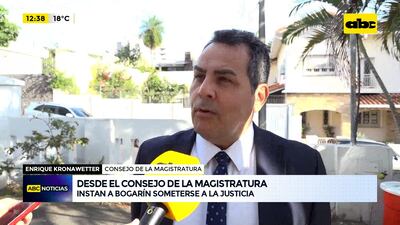 Este artículo tiene 2 años de antigüedad Los integrantes del consejo de la Magistratura Enrique Kronawetter y Edgar Olmedo plantean a su colega Jorge Bogarín se someta a la justicia para responder ante las graves denuncias de la Contraloría sobre presunta declaración jurada falsa al no poder justificar más de 2 mil millones de guaraníes depositados en cuentas de ahorro.