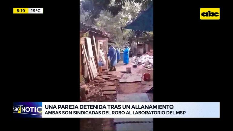 Este artículo tiene 2 años de antigüedad Una pareja compuesta por Verónica Dahiana Larrosa de 36 años y Miguel Ricardo Giménez de 38 años fue detenida tras un allanamiento, pues las dos personas son sindicadas de ingresar al local del Laboratorio Central del Ministerio de Salud Pública y sustraer equipos laboratoriales e informáticos.