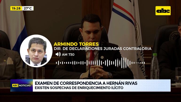 Este artículo tiene 2 años de antigüedad El director de Declaraciones Juradas de la Contraloría General confirmó que se autorizó la realización de un examen de correspondencia del senador cartista Hernán Rivas, presidente del Jurado de Enjuiciamiento de Magistrados, cuyo lujoso estilo de vida ha despertado sospechas. También habló del estado actual de las pesquisas sobre Jorge Bogarín Alfonso y el exministro de la Corte Suprema Antonio Fretes y su familia.