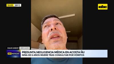 Este artículo tiene 2 años de antigüedad Una niña de seis años murió el hospital de niños acosta ñu presumiblemente por negligencia médica denuncian los familiares de la menor quién ingreso anoche en los servicios de urgencia por cuadro de vómito donde recibió cierta medicación sin embargo en horas de esta madrugada la niña se descompensó y volvió a recibir otra medicación sin que hasta ahora los familiares sepan de que medicamentos se tratan.