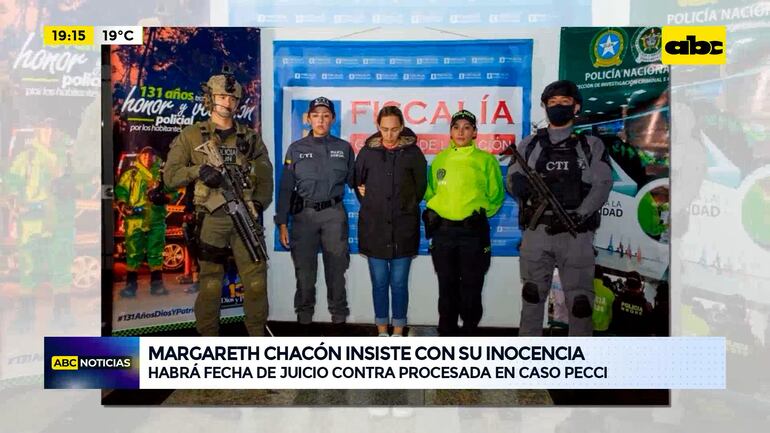 Este artículo tiene 2 años de antigüedad Margareth Chacón, procesada por el asesinato de Marcelo Pecci, se mantiene en que nada tiene que ver con el caso. Este viernes se realizó una nueva audiencia preparatoria por la causa en Colombia y el próximo viernes se conocerá la fecha de inicio de juicio oral contra la mujer.