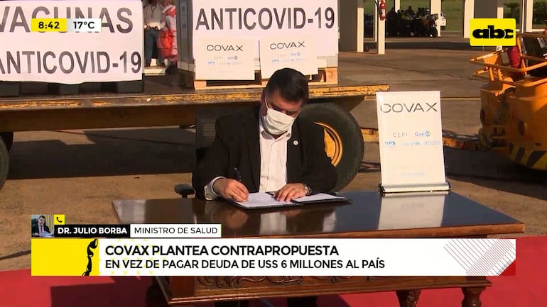 Este artículo tiene 2 años de antigüedad Las negociaciones para recuperar US$ 5.670.990 que el mecanismo Covax debe reembolsar a Paraguay por vacunas anticovid que no envió en pandemia, no avanzan. “Nosotros ya agotamos todas las instancias con COVAX porque las vacunas no llegaron cuando nosotros necesitamos”, ministro Julio Borba.