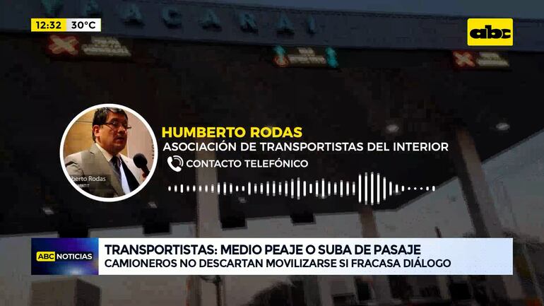 Este artículo tiene 2 años de antigüedad Ante el aumento de hasta el 200% del precio del peaje que entrará en vigencia desde el 1 de agosto en el puesto de Ypacaraí, los transportistas del interior plantean al gobierno pagar “medio peaje” o caso contrario tendrán que solicitar la suba del precio del pasaje, enfatizó el representante del gremio, Humberto Rodas.