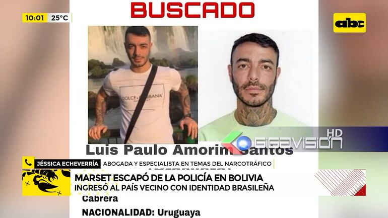 Este artículo tiene 2 años de antigüedad “Estuvo escondido en Bolivia desde septiembre del 2022. Sebastián Marset tenía un equipo de fútbol, una vida de ostentación de lujos, iba a discotecas. Se mostraba tranquilo”, expresó Jéssica Echeverría, abogada y especialista en temas del narcotráfico. Fuerzas contra el Narcotráfico de Bolivia allanaron una lujosa mansión en Santa Cruz de la Sierra, donde habría estado oculto el presunto narco uruguayo Sebastián Enrique Marset Cabrera, con su esposa y sus hijos menores. Pero, la familia logró escapar. Marset, usando nacionalidad brasileña, ingresó a suelo boliviano en setiembre de 2022.