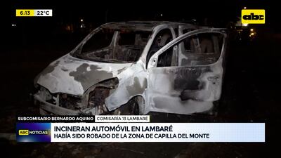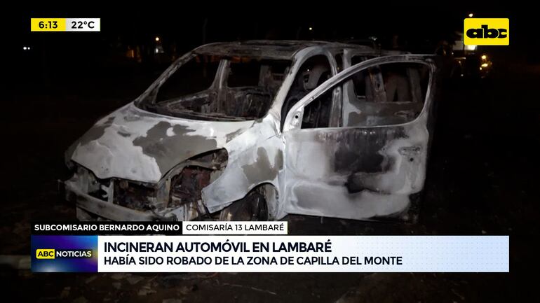 Este artículo tiene 2 años de antigüedad Un automóvil fue completamente incinerado en Lambaré. Se presume que fue utilizado para algún ilícito. El vehículo había sido robado el 19 de julio pasado de la zona de Capilla del Monte.