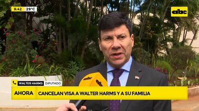 Este artículo tiene 2 años de antigüedad El diputado Walter Harms confirmó que Estados Unidos le canceló su visa a él y a toda su familia. Indicó que no recibió explicaciones pero cree que se debe a su exposición por la intervención de dicho país norteamericano en la política interna de Paraguay. Además, confirmó que su colega Yamil Esgaib tuvo la misma notificación e incluso su hija tuvo que ser deportada.