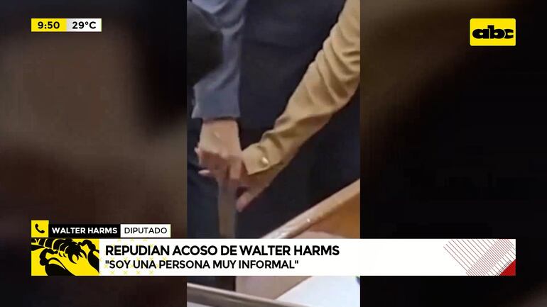 Este artículo tiene 2 años de antigüedad Videos viralizados en las redes sociales muestran al diputado Walter Harms (ANR) acosando a su colega y correligionaria Johana Vega en plena sesión. Los videos muestran al parlamentario acariciando el pelo y la espalda a su colega y luego tomándola de la mano.