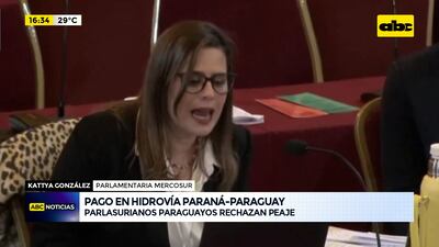 Este artículo tiene 2 años de antigüedad La delegación paraguaya presente en el Parlamento del Mercosur expuso el tema del cobro de peaje de la Hidrovía Paraguay-Paraná, por parte de la Argentina y rechazó dicha medida. La parlasuriana Kattya González instó a no rehuir a debates que son necesarios y que guardan relación con la integración entre los países.