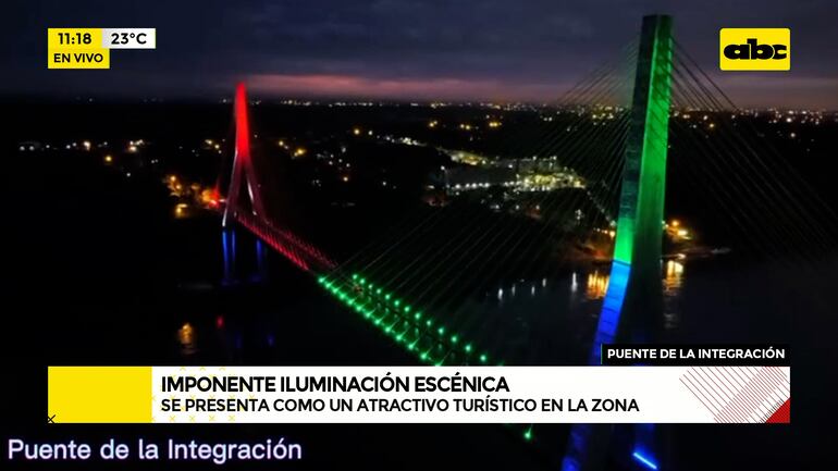 Este artículo tiene 2 años de antigüedad Se pusieron en marcha las últimas pruebas de iluminación escénica del Puente de la Integración, que a través de los colores de las banderas paraguaya y brasileña resplandece desde la triple frontera. Situada sobre el río Paraná, entre Presidente Franco y Foz de Iguazú, la imponente pasarela internacional suma un nuevo elemento a su atractivo turístico.
