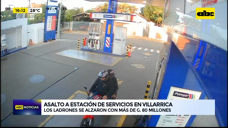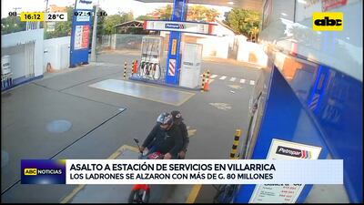 Este artículo tiene 2 años de antigüedad Dos personas asaltaron este lunes una estación de servicio en pleno microcentro de Villarrica, llevándose alrededor de 80 millones de guaraníes, producto de la recaudación del fin de semana.
