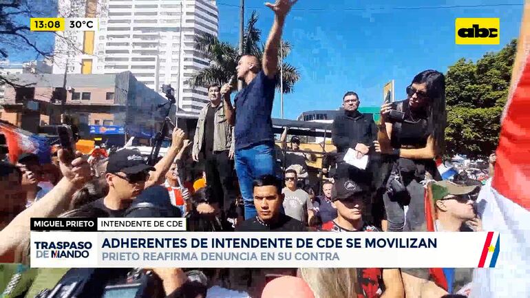 Este artículo tiene 2 años de antigüedad Los adherentes del intendente de Ciudad del Este, Miguel Prieto (Yo Creo), llegaron en gran cantidad a la rotonda Oasis para unirse a la marcha convocada por el jefe comunal para defender la administración. Prieto enfrenta un proceso penal por lesión de confianza y sostiene que está siendo objeto de una persecución política por parte del Partido Colorado.
