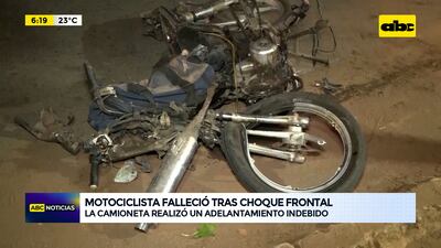 Este artículo tiene 2 años de antigüedad Un motociclista identificado como César Alcides de Los Ángeles Moraez Sánchez, de 55 años falleció tras un violento choque contra una camioneta Hyundai Tucson. Según el informe policial, el conductor de la camioneta realizó un adelantamiento, salió en el carril del motociclista y allí se produjo el violento choque frontal, que derivó en la muerte de Moraez Sánchez sobre la calle La Lomita y Séptima del Barrio Rincón de Ñemby.