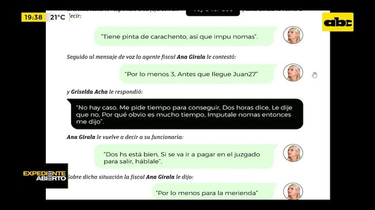 Este artículo tiene 2 años de antigüedad La investigación realizada por el fiscal Osmar Legal a la Unidad Fiscal N° 1 de San Lorenzo a cargo de Ana Girala se inició a partir de una denuncia realizada por un ciudadano al que le pidieron G. 25 millones para no acusar a su hijo, en un caso de tentativa de homicidio doloso y otros delitos, pero desnudó casi una treintena de casos de “apriete”.