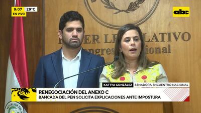 Este artículo tiene 2 años de antigüedad Bancada del PEN solicita explicaciones ante impostura. “La renegociación de Itaipú es una cuestión de Estado, no es una cuestión de Gobierno”, senadora, Kattya Gonzalez.