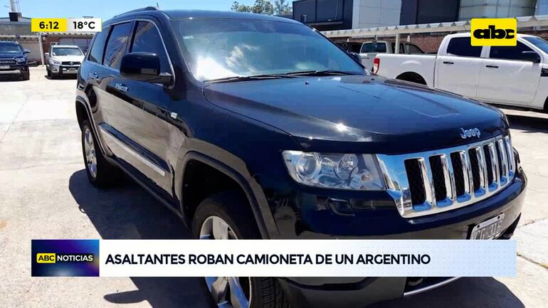 Este artículo tiene 2 años de antigüedad Una camioneta Jeep Gran Cherokee fue robada en un asalto a un ciudadano argentino por parte de dos motoasaltantes. El hecho se produjo sobre la Avenida Defensores del Chaco casi Yacare Valija, en la zona de Cuatro Mojones, donde según la denuncia, dos hombres que estaban en una motocicleta y yendo a su lado le mostraron al conductor identificado como Luis Antonio Landriel, lo que sería la chapa de la camioneta, por lo que tuvo que quedarse a un costado de la avenida. Cuando estacionó uno de ellos le apuntó con arma de fuego y le indicó para bajarse. Allí entregó el vehículo a los delincuentes