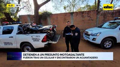 Este artículo tiene 2 años de antigüedad Un joven identificado como Juan Pablo Sotelo Villalba de 20 años fue detenido y sería parte de una gavilla de motoasaltantes que operan sobre todo en la zona de Capiatá y Luque. La detención se produjo tras el seguimiento al robo de un celular que cuenta con GPS y la policía al llegar al sitio se encontró prácticamente con un aguantadero de objetos robados como cuatro motocicletas, celulares, mochilas, cascos, hasta una amoladora. El robo se produjo en la zona de Capiatá y haciendo el seguimiento llegaron hasta el barrio San Juan de Isla Bogado, Luque.