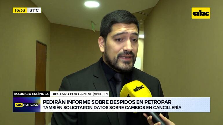 Este artículo tiene 2 años de antigüedad El diputado Mauricio Espínola adelantó esta mañana que presentará un pedido de informes a la Cancillería y a Petropar sobre las masivas destituciones llevadas a cabo recientemente por el presidente Santiago Peña. El legislador señaló que, sobre todo, va a pedir detalles sobre las acciones administrativas, financieras y jurídicas tomadas por el nuevo Gobierno para la reducción del precio del combustible y su relación con las casi 500 desvinculaciones solamente en el emblema estatal.