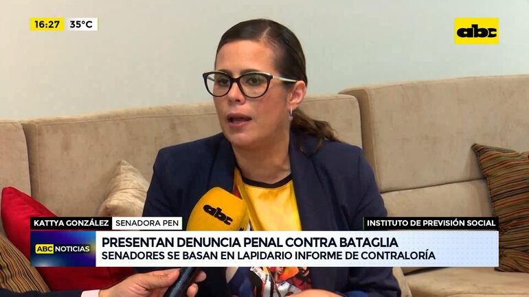 Este artículo tiene 2 años de antigüedad Parlamentarios de la bancada opositora al partido colorado presentaron una denuncia penal en contra del expresidente del IPS, Vicente Bataglia y sus consejeros. La denuncia presentada por la senadora Kattya González y el diputado Raúl Benítez, basada en el informe de la Contraloría General de la República, se enfocó específicamente en el rubro de combustibles. González habló de indicios de irregularidades administrativas y hechos con relevancia penal.