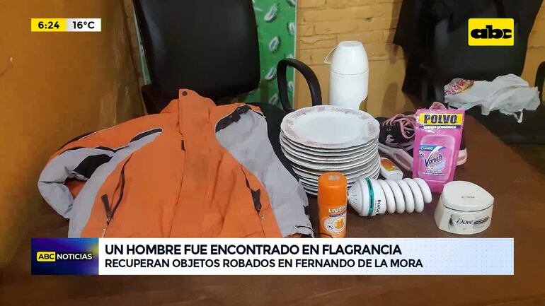 Este artículo tiene 2 años de antigüedad Un hombre fue sorprendido en flagrancia tras un robo domiciliario en la zona sur de Fernando de la Mora. Se trata de Miguel Ramón Villarta Mendoza de 35 años, quien fue detenido con las evidencias que tenía en un bolso. La propietaria estaba llegando a su casa cuando supuestamente se cruzó con el ladrón cuando salía de la vivienda. Realizó la denuncia, se movilizó la policía, a poca distancia fue reducido el malviviente y en su poder tenía ropas y calzados deportivos, platos, foco entre otros artículos reconocidos por la víctima.