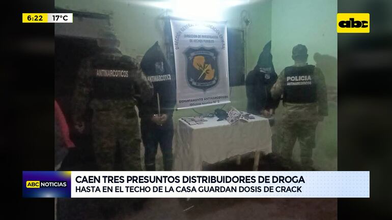 Este artículo tiene 2 años de antigüedad Tres personas resultaron detenidas tras allanamientos en simultáneos contra el narcomenudeo en el barrio La Querencia de Mariano Roque Alonso. Se tratan de José Iván Delfino Coronel, de 19 años, Adolfo Antonio Aguilera Galván, de 22 años y Liz Haydee Núñez Ayala, de 39 años, quienes fueron privados de libertad pues son sindicados como presuntos microtraficantes de drogas.
