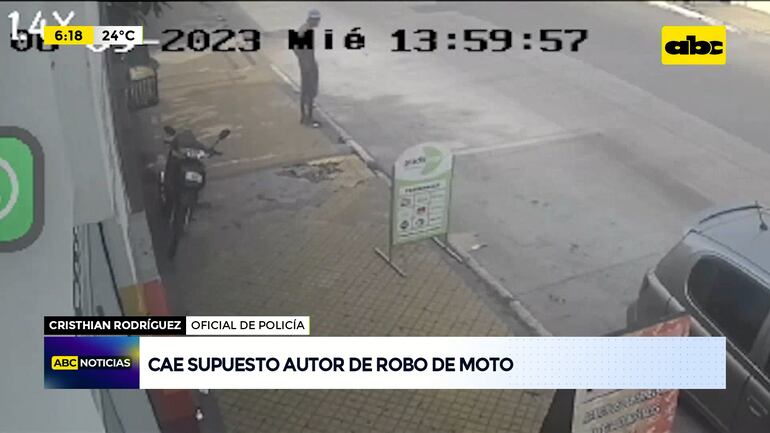 Este artículo tiene 2 años de antigüedad Un hombre identificado como Héctor Damián Valdez de 36 años, con varios antecedentes, fue detenido pues es sindicado de ser el autor del robo de una motocicleta estacionada en Cuarta Proyectadas y Colón de Asunción. La víctima, acercando circuito cerrado a la comisaría realizó la denuncia y en base a las características observadas los agentes pudieron capturar al presunto autor en el barrio Tacumbú.