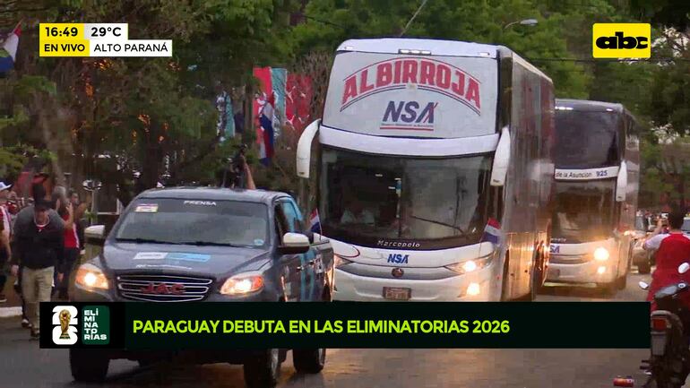 Este artículo tiene 2 años de antigüedad El bus que traslada a la selección paraguaya llegó al estadio Antonio Aranda, para el compromiso ante Perú por la primera fecha de las Eliminatorias Sudamericanas 2026, que arrancará a las 18:30.