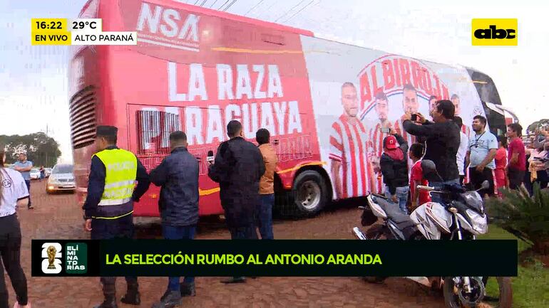 Este artículo tiene 2 años de antigüedad Ya partió el bus de la Selección paraguaya rumbo al estadio Antonio Aranda. Una gran cantidad de personas acompaña en caravana a los jugadores. Paraguay enfrenta a Perú en el arranque de las Eliminatorias Sudamericanas al Mundial 2026. La Albirroja recibe a la Bicolor en el estadio Antonio Aranda Encina de Ciudad del Este.