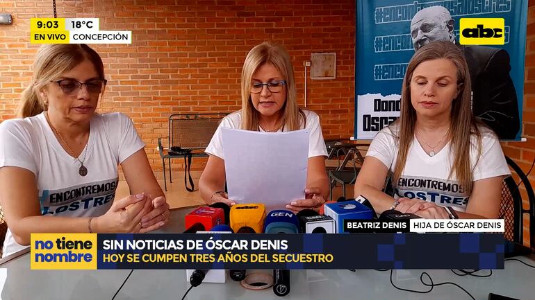 Este artículo tiene 2 años de antigüedad Con impotencia y dolor por este nuevo año, la familia de Óscar Denis hace un nuevo reclamo a las autoridades al cumplirse tres años del secuestro del político liberal. Enfatizaron que hoy renuevan sus esperanzas en que las promesas de mejorar la búsqueda no solo de Denis, si no que de Edelio Morínigo y Félix Urbieta, se cumplan.
