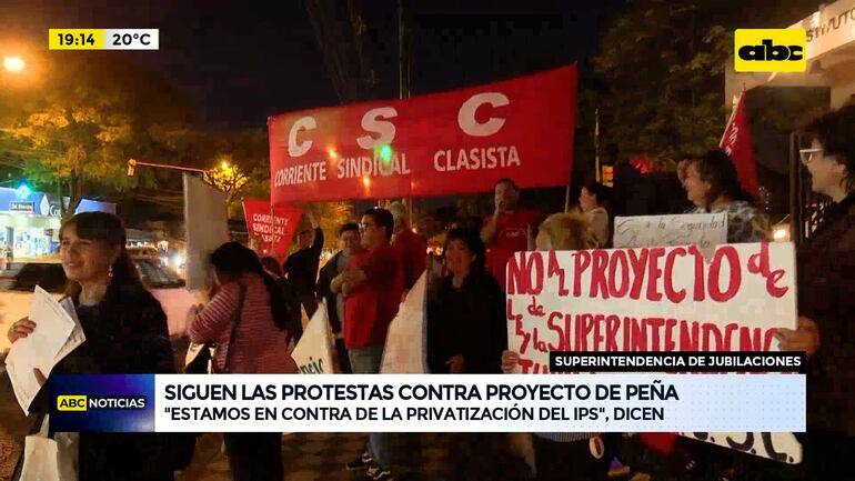 Este artículo tiene 2 años de antigüedad La Corriente Sindical Clasista protestó frente al Hospital Central del Instituto de Previsión Social contra la intención de Santiago Peña de crear la Superintendencia de Jubilaciones y Pensiones. Consideran que la finalidad es privatizar completamente los aportes.